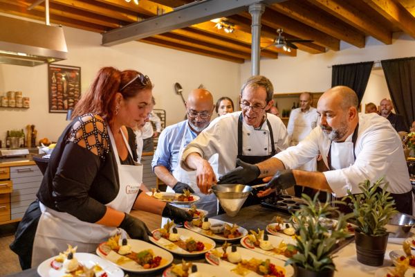 In unserer Kochschule bieten wir für Firmen Gruppenkurse bei Spitzenköchen an. Mit 15 bis 55 Personen kochen unsere internationalen Profis ein mehrgängiges Menü, das im Anschluss von allen gemeinsam verkostet wird. Dabei kann sich jeder Teilnehmer so einbringen, wie er es möchte. Vom Zuschauen bis zum aktiven Mitkochen ist alles möglich.